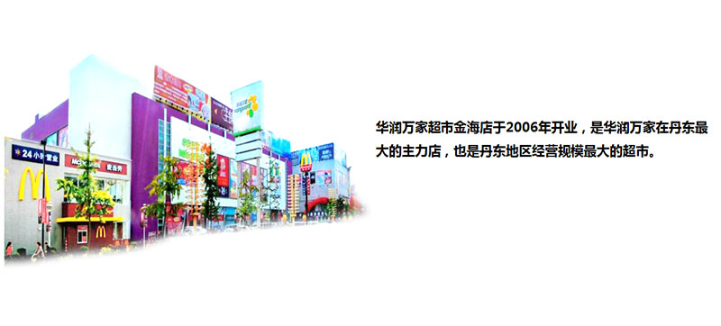 金海商業(yè)廣場(chǎng)2004年11月開工,2006年竣工,位于丹東市東部,抵觸丹東東西主干道錦山大街和南北主干道金海路交匯處,是丹東東部地區(qū)的商業(yè)中心??偨ㄖ娣e約10萬平方米,由大型購物廣場(chǎng)、女人街A、B座室內(nèi)步行街、女人街C座、麥當(dāng)勞、金海寶山批發(fā)城等主要建筑構(gòu)成 。大型購物中心樓前設(shè)有露天停車場(chǎng),并配有先進(jìn)的車輛停泊管理系統(tǒng),可以滿足整個(gè)商圈的停車需求。金海商業(yè)廣場(chǎng)擁有大型超市、五星影城、時(shí)尚餐飲、流行百貨、電器賣場(chǎng)、游樂中心、家具工廠店、小商品批發(fā)城等等,通過多種業(yè)態(tài)的錯(cuò)位經(jīng)營,展現(xiàn)完善的購物、餐飲、娛樂、休閑、文化、旅游功能。
