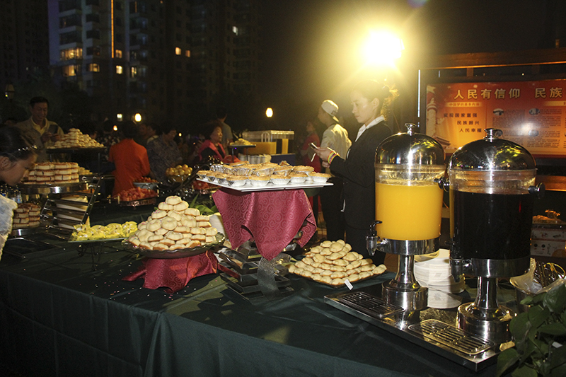 賞月會(huì)現(xiàn)場(chǎng),遼寧金海集團(tuán)為廣大業(yè)主居民準(zhǔn)備了精彩的節(jié)目,各式美味月餅、新鮮水果與特色飲料,社區(qū)居民們陶醉在良辰美景與精致美食中。共話家常,同續(xù)鄰里情。