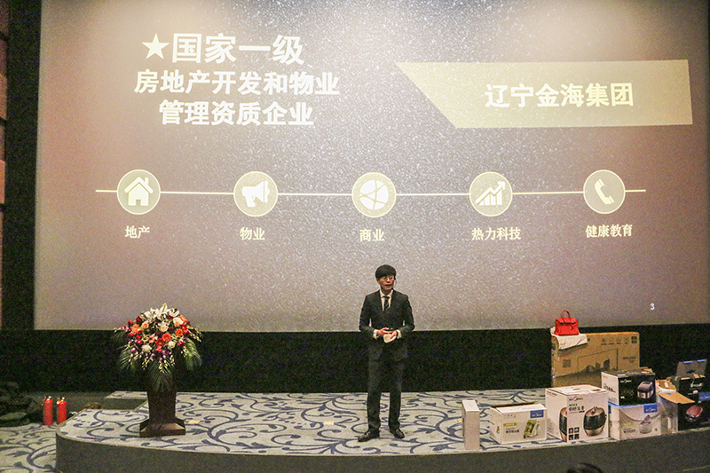 2017年1月7日上午,遼寧金海集團(tuán)在金海影院2號影廳舉辦“金海社區(qū)生活服務(wù)平臺‘利家’產(chǎn)品發(fā)布會暨2017年業(yè)主答謝拍賣會。