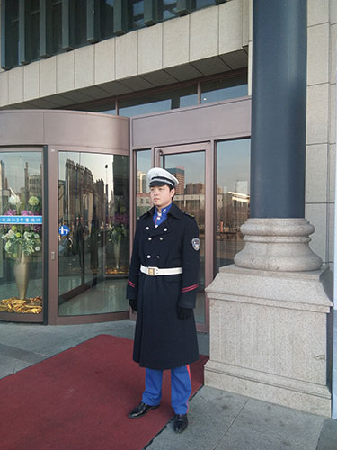 那天是個星期五,我和老伴兒到金海大廈門前,準備乘坐金海溫泉公館的班車去五龍背溫泉小鎮(zhèn)洗澡。當(dāng)時正趕上天冷風(fēng)大,大廈門前的臺階結(jié)上了冰霜,特別濕滑。值班保安(即張宏偉同志)怕我下臺階時摔倒,主動跑上前來攙扶我,一直把我平安地送上班車。這中間我一直很不好意思,連聲向他道謝,他卻說:“咱哪家不都有老人嘛!”這句話真是受聽??!