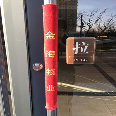 12月4日傍晚回家時,我走到單元門口,習(xí)慣性地刷卡、推門。咦,手扶門把手,怎么沒了往日冰涼刺骨的感覺?仔細(xì)一看,金屬門把手上套上了一層寫有“金海物業(yè)”的絨布套,頓時覺得一股暖流涌遍全身,從手心暖到心底……
