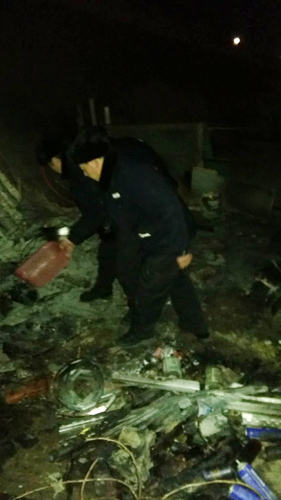大火撲滅后,消防車和消防官兵都已撤離現(xiàn)場,但金海物業(yè)的工作人員沒有放松警惕,仍繼續(xù)在原地排查火情,進(jìn)行清理工作。當(dāng)他們發(fā)現(xiàn)仍有細(xì)微的火苗燃燒時(shí),立刻用便攜式滅火器將其熄滅,直至完全恢復(fù)正常才離開。