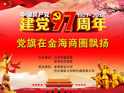 6月27日,由興東街道黨委、草市社區(qū)黨委主辦,由金海商業(yè)公司、丹東闔家云創(chuàng)孵化器有限公司承辦的慶祝中國(guó)共產(chǎn)黨建黨97周年“黨旗在金海商圈飄揚(yáng)”大型活動(dòng),在金海商業(yè)廣場(chǎng)女人街云創(chuàng)空間隆重舉辦。