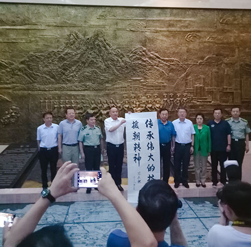 7月14日上午,原中央政治局委員、中央軍委副主席范長龍一行,在丹東市領(lǐng)導(dǎo)及相關(guān)人員陪同下,冒雨視察了全國愛國主義教育基地——丹東抗美援朝紀念館,并留下了“傳承偉大的抗美援朝精神”的親筆題字。