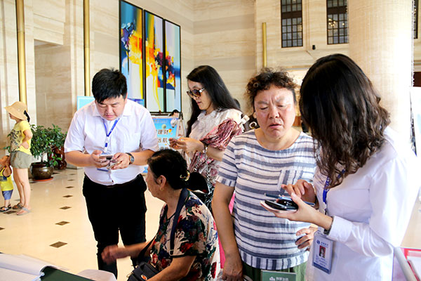 業(yè)主們通過工作人員的講解下載利家平臺APP并綁定銀行卡,再利用利家平臺APP現(xiàn)場繳納物業(yè)費,憑繳費截圖到物業(yè)處開具收據。