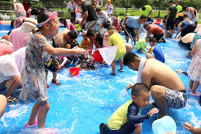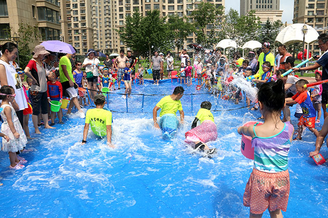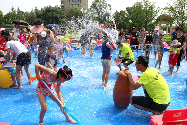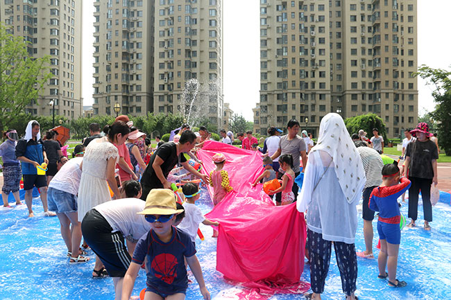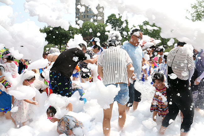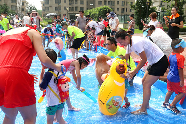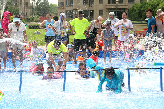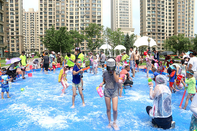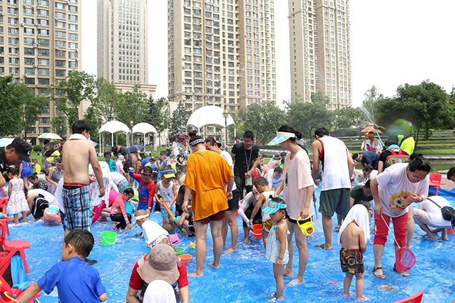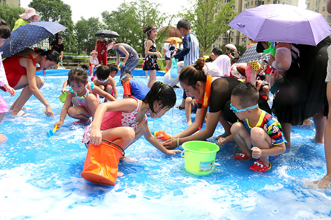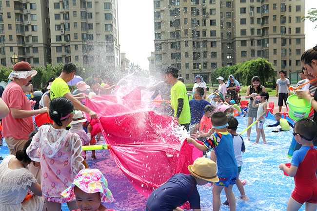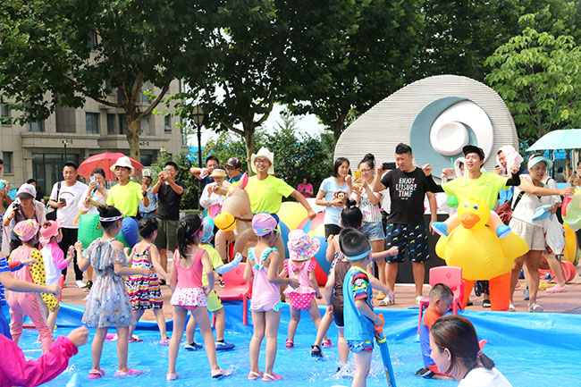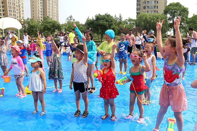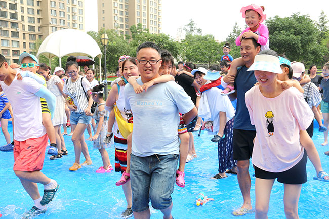 濱江3號(hào)園區(qū)現(xiàn)場(chǎng)人頭攢動(dòng),熱鬧非凡!大的小的孩子,紅的綠的水槍?zhuān)w濺的水花,泡沫,爽朗的笑聲,刺激的尖叫聲,就像一個(gè)個(gè)美妙的音符,共同譜寫(xiě)出一場(chǎng)別開(kāi)生面的音樂(lè)會(huì)。孩子和大人們?cè)谒氖澜缰?,盡情交流,親近,溝通,釋放······