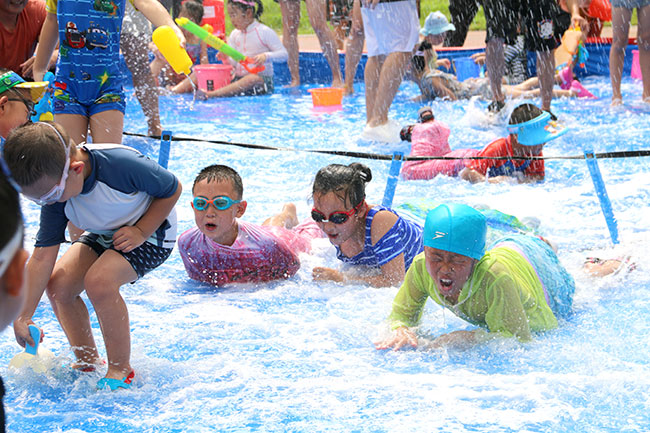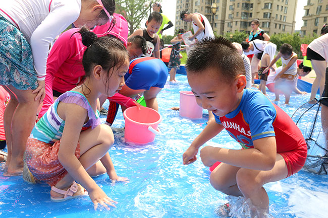 這次的水上運(yùn)動(dòng)會(huì)共設(shè)置多個(gè)游戲環(huán)節(jié),分別是狂歡泡沫大戰(zhàn)、尋寶活動(dòng)、泡沫排球、潑水活動(dòng)、美人魚(yú)比賽、抓泥鰍等。讓寶貝體驗(yàn)到不同的水上游戲,充分感受水的魅力。每一個(gè)游戲都充滿(mǎn)了樂(lè)趣,孩子們和家長(zhǎng)親密配合,玩得不亦樂(lè)乎。