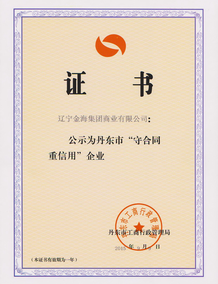 近日,商業(yè)公司順利通過丹東市工商行政管理局的各項審核,合同簽訂和管理得到了市工商局領(lǐng)導(dǎo)的高度認(rèn)可。此次,商業(yè)公司已經(jīng)是第七次獲得省、市工商局授予的“守合同重信用”企業(yè)榮譽稱號。