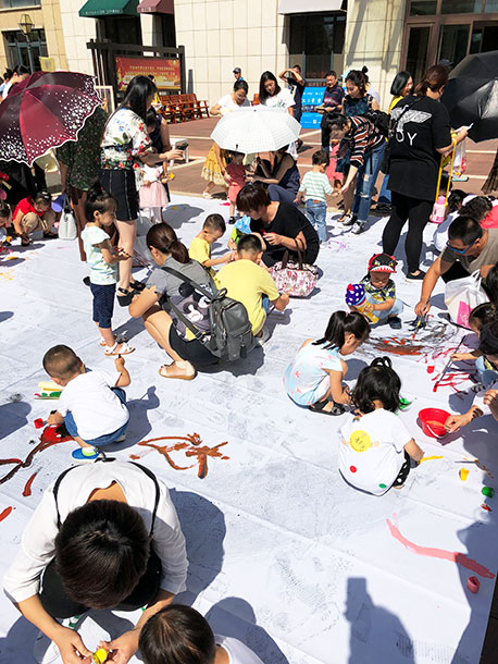9月1日上午9點,金海集團攜手楊梅紅國際私立美校丹東朗勤校區(qū),特別將楊梅紅體驗藝術展搬到了金海濱江3號,多樣的藝術環(huán)節(jié)吸引了很多家長孩子們,現(xiàn)場近100余組家庭參與。