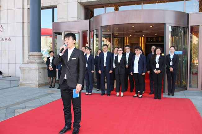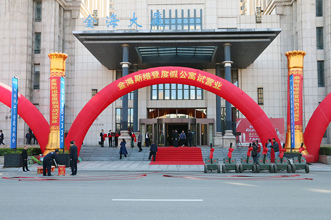 在禮花齊放,鞭炮齊鳴,掌聲雷動中,遼寧金海集團(tuán)總經(jīng)理莫丹、常務(wù)副總經(jīng)理劉中、總經(jīng)理助理兼物業(yè)公司總經(jīng)理蘇瑩、營銷總監(jiān)杜春臻、金海大廈總經(jīng)理張?jiān)伱罚餐瓿山鸷K咕S登度假公寓試營業(yè)剪彩儀式!