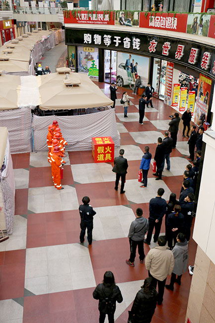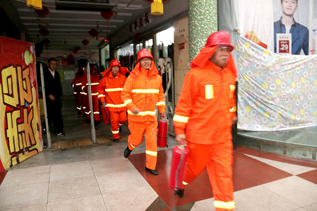 演練6.30分在女人街商場(chǎng)中央舞臺(tái)區(qū)域正式開始,演練分為:火災(zāi)發(fā)生第一時(shí)間現(xiàn)場(chǎng)人員用滅火器進(jìn)行滅火及火災(zāi)報(bào)警、商場(chǎng)疏散引導(dǎo)組組織人員進(jìn)行疏散、微型消防站人員進(jìn)行二次火災(zāi)現(xiàn)場(chǎng)滅火、消防控制室人員利用消防廣播及聲光報(bào)警器組織人員疏散、通訊聯(lián)絡(luò)組聯(lián)系消防隊(duì)進(jìn)行商場(chǎng)火災(zāi)撲救。
