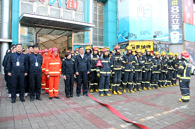 2018年11月9日商業(yè)公司邀請(qǐng)丹東市消防局,在女人街商場(chǎng)聯(lián)合舉行了2018年冬季滅火及疏散預(yù)案演練,商業(yè)公司及女人街商場(chǎng)業(yè)戶全體人員參加,消防局調(diào)用丹東市、振興區(qū)、元寶區(qū)、合作區(qū)4個(gè)特勤中隊(duì),以及泡沫消防車、水罐消防車、登高云臺(tái)車、應(yīng)急指揮車12輛滅火作戰(zhàn)車輛。