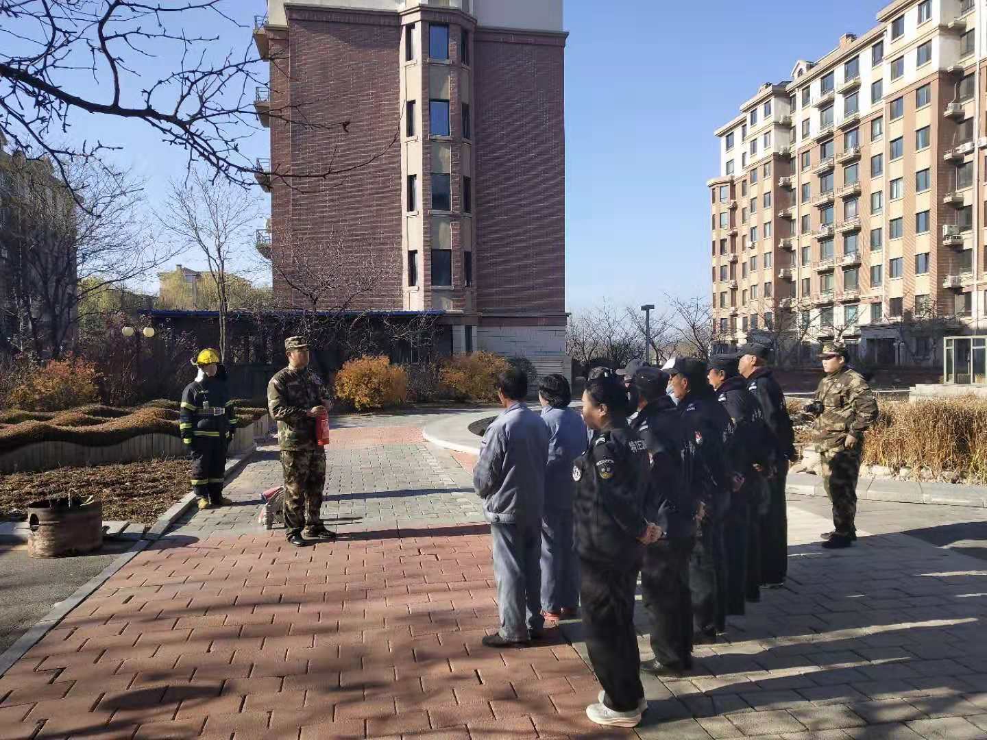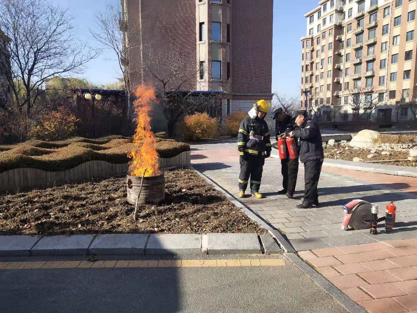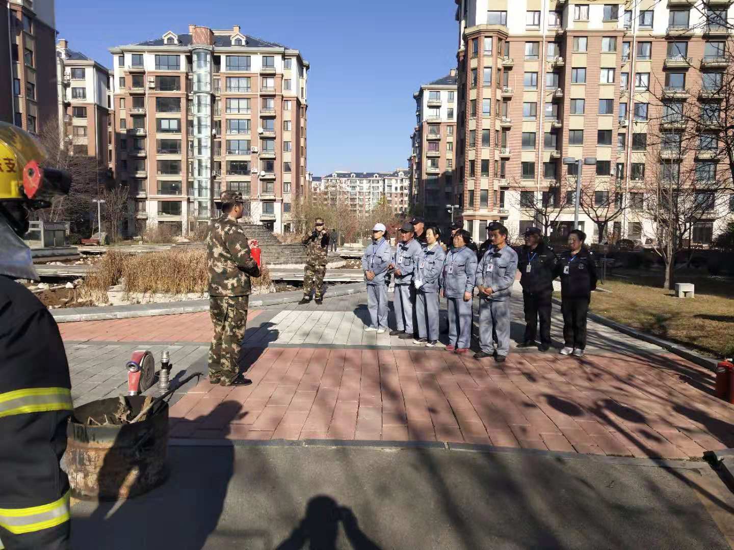 繼11月12日江畔花園消防知識(shí)培訓(xùn)后,14日上午物業(yè)公司又組織溫泉小鎮(zhèn)管理部進(jìn)行消防培訓(xùn)。特聘請(qǐng)振安區(qū)五龍背消防中隊(duì),在園區(qū)中央噴泉空地,開(kāi)展消防培訓(xùn)及消防演練。