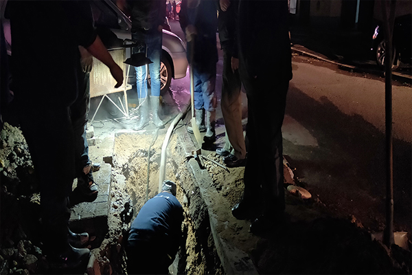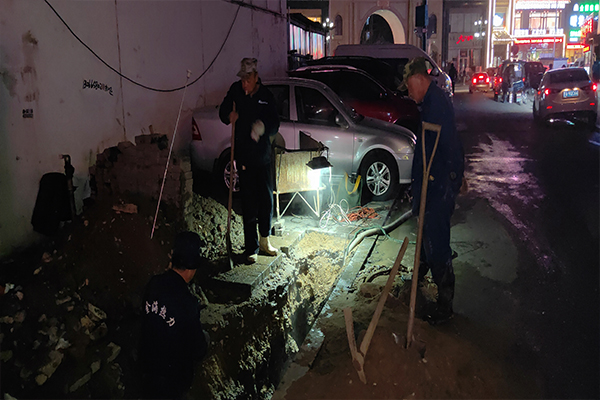 今日熱力公司在供暖運(yùn)行期間發(fā)現(xiàn)供金海商圈一次網(wǎng)壓力存在掉壓情況,熱力公司為確保商圈正常供暖以及供暖熱源浪費(fèi)立即組織人員進(jìn)行管道漏點(diǎn)排查。經(jīng)過(guò)現(xiàn)場(chǎng)勘察,最終確定漏點(diǎn)位置。熱力公司年總立即組織工程人員開展搶修工作,商業(yè)公司??偓F(xiàn)場(chǎng)組織相關(guān)人員配合搶修工作。