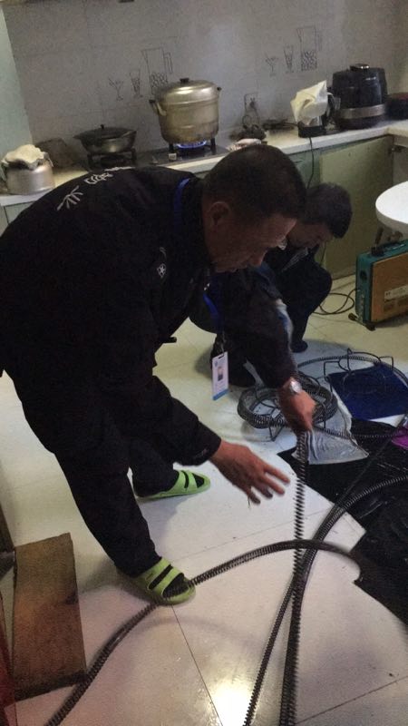 物業(yè)管理部小馬、王師傅、呂師傅迅速趕到家里,在查看情況之后,小馬同志看透我們的心思,安慰我們說:“你們是老人,打掃有困難,我們來幫忙。”說著就帶頭投入疏通下水的工作中,他們有的擦,有的拖,忙得“不亦樂乎”。