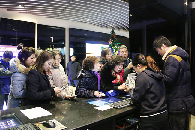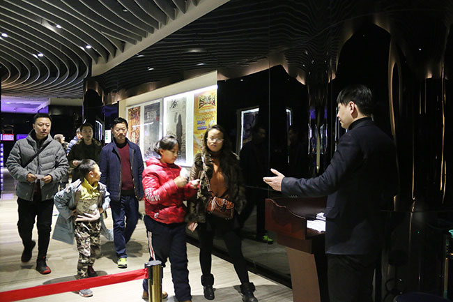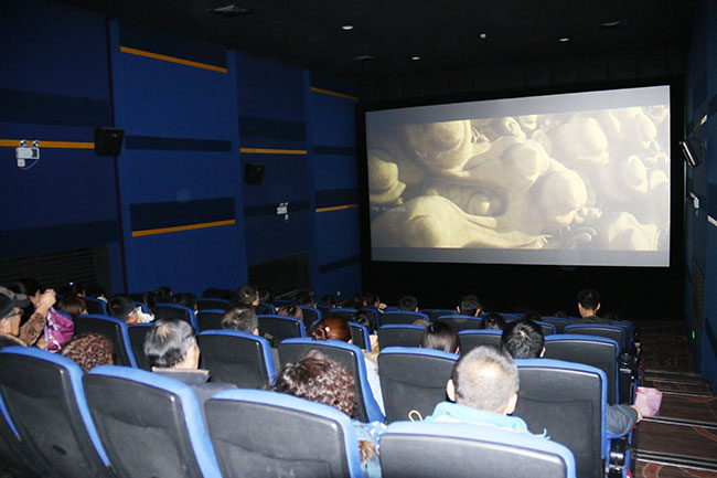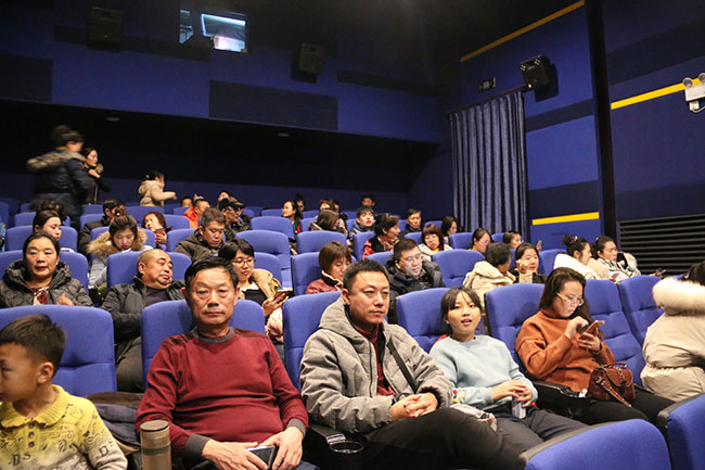 電影還未開始,業(yè)主們就已經(jīng)紛紛趕到影院現(xiàn)場,領(lǐng)取電影票,隨后陸續(xù)進入影廳,三五成群在影廳聊著天,不一會功夫,龐大的業(yè)主隊伍已經(jīng)占據(jù)整個影廳。