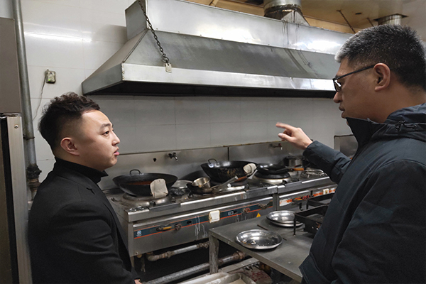 檢查過程中與業(yè)戶溝通,幫助業(yè)戶找出安全隱患,并給出整改方案。同時向業(yè)戶示范如何避免火災(zāi)和掌握火災(zāi)發(fā)生時如何初步滅火及自救逃生的方法。讓業(yè)戶們更加了解用電隱患和消防知識,確保商圈營業(yè)安全。