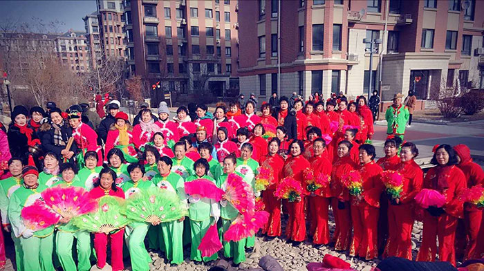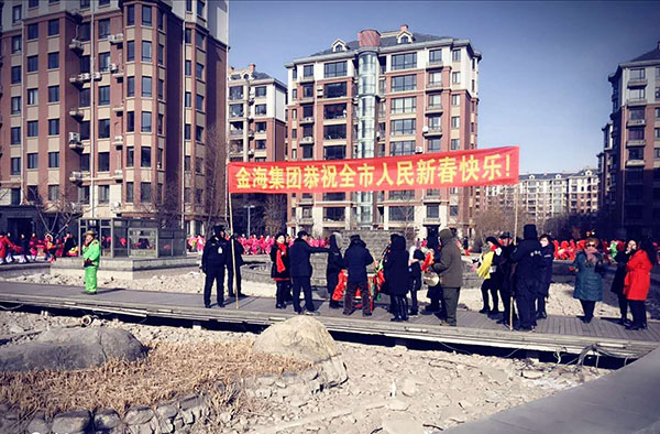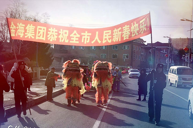 8時(shí)28分,五龍背站前廣場上鑼鼓喧天嗩吶歡奏,一百多米長的秧歌隊(duì)伍在兩名工作人員高舉著“金海集團(tuán)恭祝全市人民新春快樂”的祝福標(biāo)語引導(dǎo)下浩浩蕩蕩一行由站前廣場啟始隨著熱鬧的敲鑼打鼓聲踩著有節(jié)奏的鼓點(diǎn)邊走邊舞動(dòng),熱鬧非凡。10時(shí)6分,秧歌隊(duì)伍由1號崗正門順利駛?cè)雵娙獜V場,舞獅子、跑旱船、花棍子、每位秧歌隊(duì)員精神飽滿舞的喜氣洋洋,園區(qū)內(nèi)早早等候的業(yè)主們也被現(xiàn)場的活動(dòng)熱情所渲染并積極參與進(jìn)來,拍照攝影,大家對舉辦的這次活動(dòng)紛紛贊不絕口,并希望這樣的活動(dòng)每年都能搞一搞。