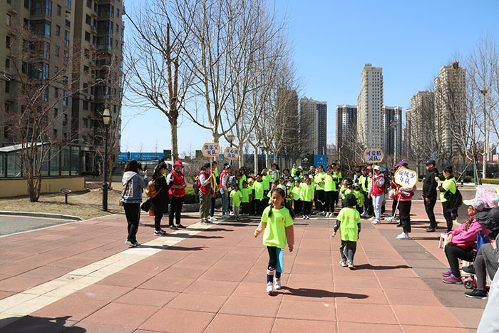 早上8:30,家長孩子們在銀帆老師的帶隊下,從江邊玫瑰廣場開始,徒步到達濱江3號,家長孩子手牽手,或孩子在前,健步如飛,親情與快樂元素點燃了現(xiàn)場的氛圍。