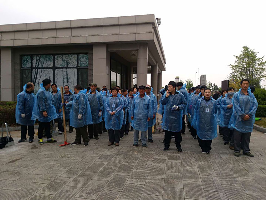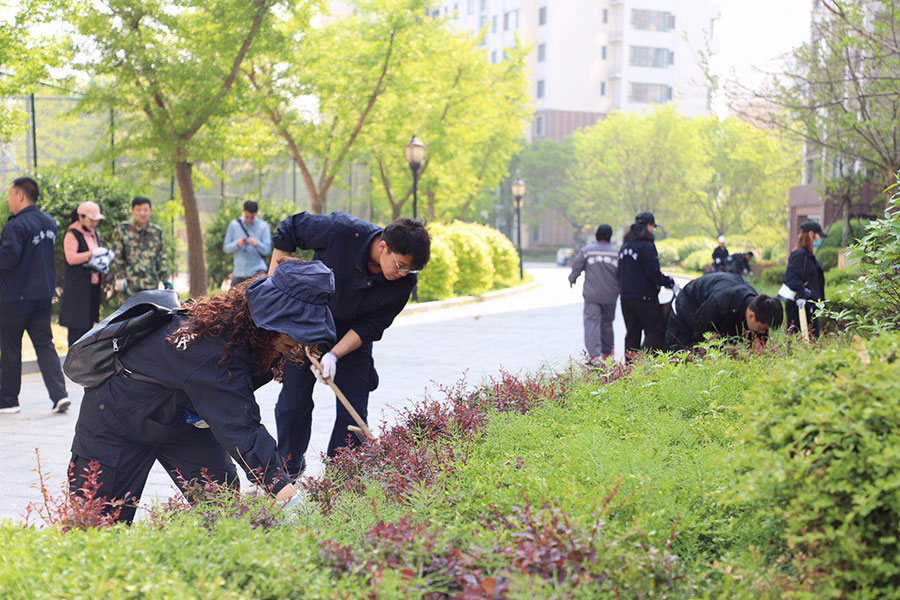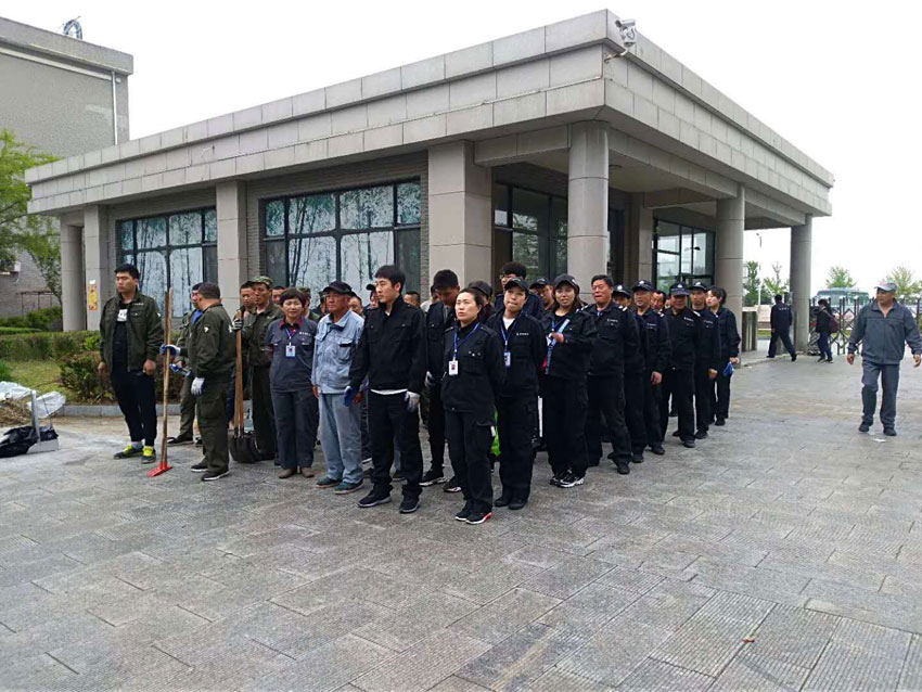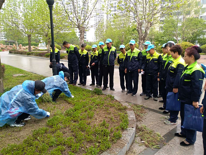 原來,金海物業(yè)新近承接了新區(qū)大型公務員小區(qū)——國門灣新世紀佳園,他們這是金海員工總動員,利用這個周六、周日全體去參加義務勞動!