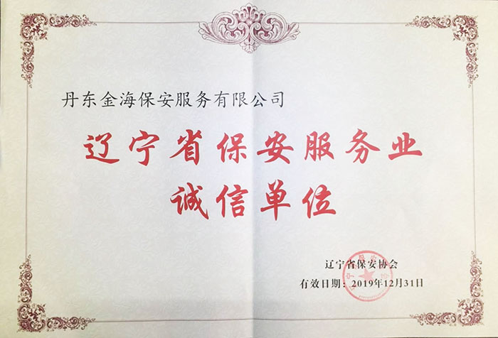 近期,在遼寧省保安協(xié)會評選的先進(jìn)單位中,丹東金海保安服務(wù)有限公司喜獲“遼寧省保安服務(wù)業(yè)誠信單位”。