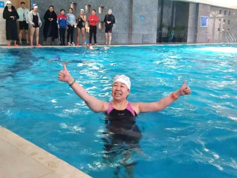 隨著一聲哨響,比賽正式開始!選手們雖然并非職業(yè)運動員,但他們各個精神飽滿,在水中劈波斬浪奮勇爭先,激烈角逐,引來了圍觀人員的陣陣喝彩和掌聲。決賽現場人聲鼎沸,熱情高漲。年過半百的老人們速度驚人不輸年輕與活力。最為精彩的是小選手8歲的笑笑,別看她年紀小,進入泳池像一條魚兒穿梭其中。