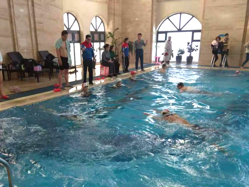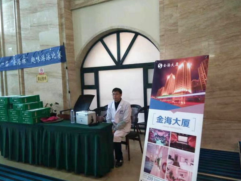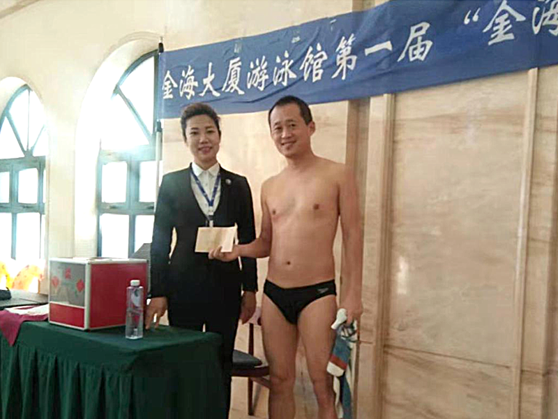 金海大廈總經理遲慧慧女士到現場為選手加油鼓勵并發(fā)表講話。參賽者小到8歲的孩童,長到70歲的耄耋老人。比賽分為老年組、青年組50米蛙泳,男子組、女子組25米,自由泳和男女混合接力50米蛙泳三個項目。為了確保比賽安全順利的進行,大廈邀請了熙康體檢中心醫(yī)護人員,游泳教練兼救生員劉青云。劉教練在賽前講解安全注意事項以及比賽規(guī)則。