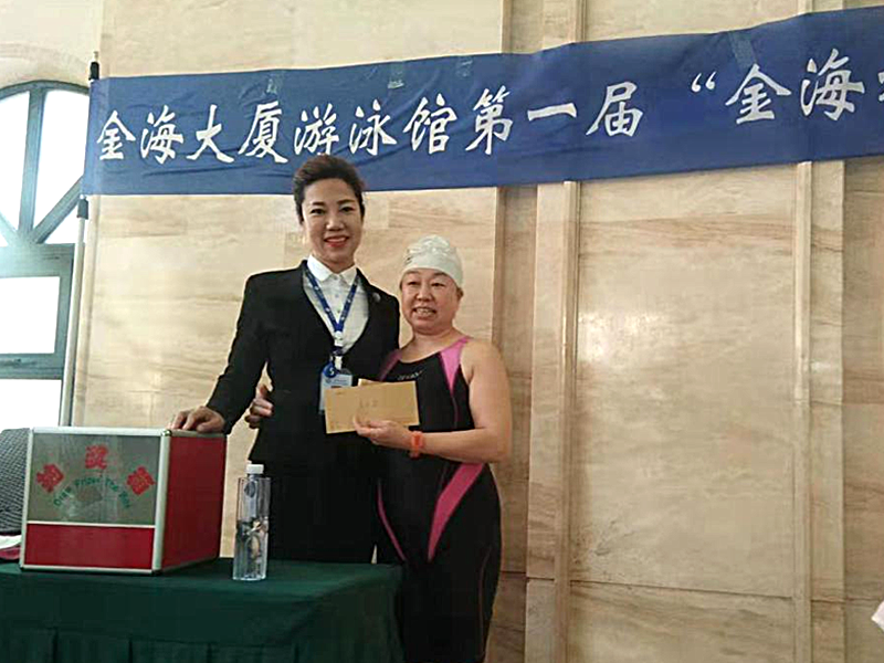 頒獎結束后總經理遲慧慧女士做總結講話,感謝各位業(yè)主的積極參與,此次比賽為金海游泳館第一屆游泳比賽,活動的成功為下一屆游戲比賽奠定了基礎。大廈將在集團“以人為本,點面結合,引導消費,追求卓越”的方針指導下更好的服務廣大業(yè)主,同時也歡迎大家體驗大廈的其他業(yè)態(tài)。