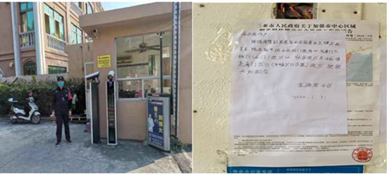 為全力做好疫情防控工作,有效阻斷新型冠狀病毒感染的肺炎疫情傳播途徑,金海物業(yè)始終站在“第一防線上”。保安師傅戴著口罩,對進(jìn)來車輛進(jìn)行排查,為了嚴(yán)防疫情,嚴(yán)格把控、掌握進(jìn)出人員信息,小區(qū)目前實行半封閉式管理,原有的三個進(jìn)出大門關(guān)閉了兩個,只留了一個大門可以進(jìn)出,凡是進(jìn)出車輛保安都要對司機(jī)進(jìn)行體溫檢測。此外,從1月29日起小區(qū)施行半封閉狀態(tài),除了小區(qū)業(yè)主以外,外來人員若無特殊要求一律不允許進(jìn)入。