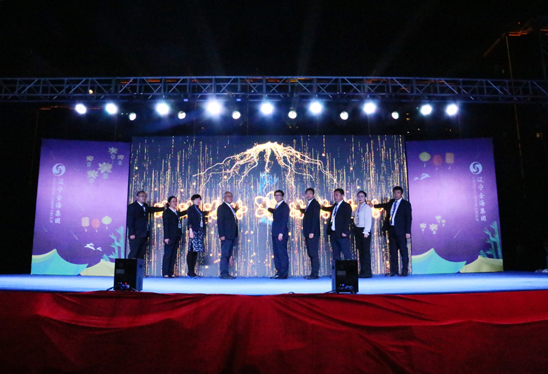 金海高管團隊,在全體在場朋友們熱切的矚目中,在熱烈的歡呼里,點亮案名,隆重地宣告:金?!ぬ以蠢镎秸Q生了!