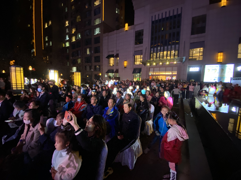 他們有很多是從外地回家過節(jié)的,一家人團聚在一起,漫步于家園,欣賞夜幕下的美麗庭院,親情滿滿,其樂融融。