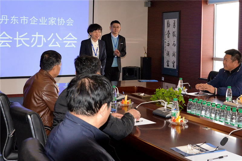 4月15日上午,丹東市企業(yè)家協(xié)會會長辦公會在遼寧金海集團舉行,遼寧金海集團副總經(jīng)理李小琳、營銷總監(jiān)孫丹、傳媒公司總經(jīng)理姜俊鵬熱情接待了一行貴賓。