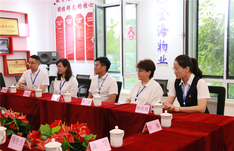 為慶祝中國共產(chǎn)黨成立100周年,6月30日上午,黨建引領(lǐng)商會規(guī)范化建設(shè)參觀交流活動在金海濱江3號隆重舉行。遼寧金海集團副董事長、總經(jīng)理賈本鑫,遼寧金海集團辦公室主任李秀悅,遼寧金海物業(yè)總經(jīng)理蘇瑩及金海傳媒總經(jīng)理姜俊鵬等人熱情接待了丹東市工商聯(lián)主席張利紅一行并陪同參觀。