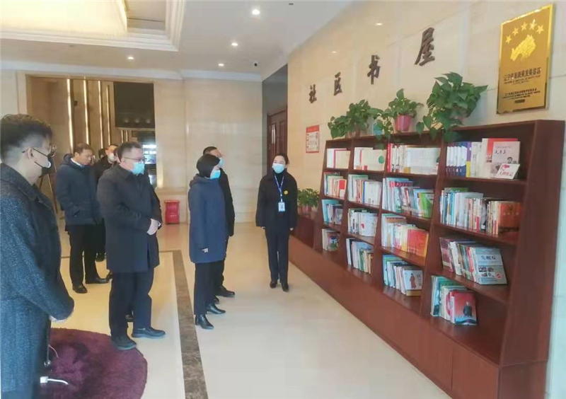 遲磊書記一行先后參觀了金海影院、百米長廊、社區(qū)書屋等場所,對(duì)金海利他精神及紅色物業(yè)工作給予好評(píng)。