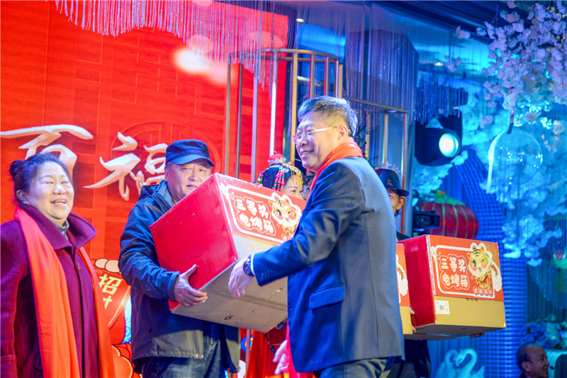 聯(lián)歡會上,多才多藝的金海業(yè)主及員工,充分展示了對生活的熱愛以及向上生長的精神。舞蹈、獨唱、樂器、歌舞秀、誦讀……表演者用活力四射的表演,演繹五彩繽紛的幸福生活。一輪輪幸運的抽獎,精彩的游戲互動環(huán)節(jié),一次次將新春聯(lián)歡會氛圍推向高潮。按摩椅、多功能鍋、烤箱、養(yǎng)生壺等獎品被幸運的業(yè)主帶回家,未中獎的業(yè)主每人也領(lǐng)到了“?;ⅰ奔t包,寓意新的一年紅紅火火,虎虎生威。